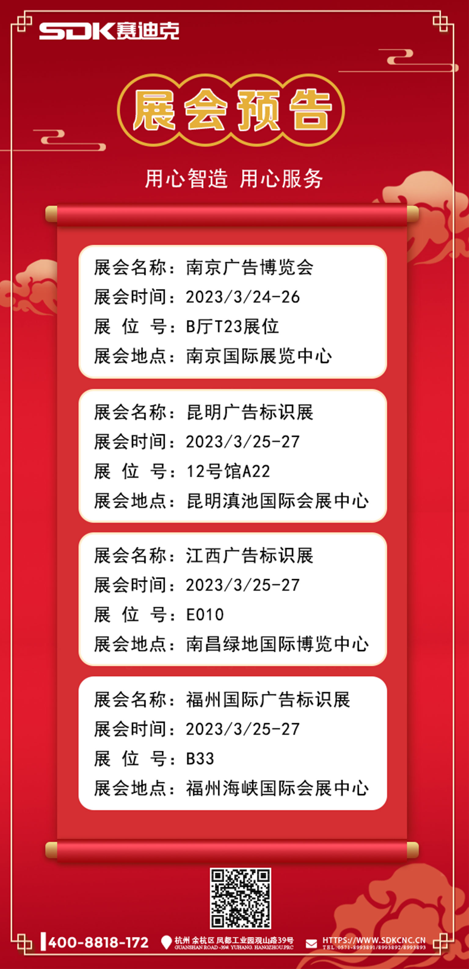 本文《3月最后一波展會,不要再錯(cuò)過了》由木工雕刻機(jī)- 光纖激光切割機(jī)-震動刀裁切機(jī)賽迪克提供,賽迪克自動化設(shè)備有限公司多年專注研發(fā)生產(chǎn)銷售光纖激光切割機(jī)、巡邊雕刻機(jī)、震動刀切割機(jī)、木工雕刻機(jī)、賽迪克雕刻機(jī),高速雕銑與切割一站式解決方案,切割機(jī)廠家批發(fā)價(jià)格。