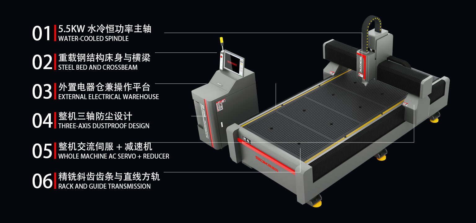 K6-2500 is a mini-character engraving machine independently developed and produced by SDKCNC, which can be used for high-speed engraving and milling cutting of various soft metals and plate processing, with high rotational speed, constant torque, low runout, long service life, stable and strong industrial characteristics, and is widely used in the engraving and milling cutting of copper, aluminum, acrylic, wood, aluminum-plastic/insulation panels, anti-belts, epoxy resin panels, carbon fiber composite materials, and the processing of various panels. Various plate processing fields