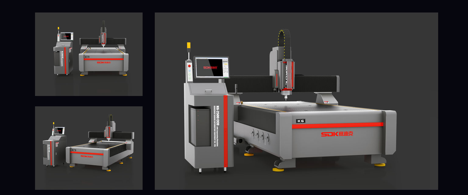 K6-2500 CCD is a mini word engraving machine independently developed and produced by SDKCNC, which can be used for high-speed engraving and milling cutting of various soft metals and plate processing, with high rotational speed, constant torque, low runout, long service life, stable and strong industrial characteristics, high-resolution CCD positioning, and can be used to obtain the contour of the outline with no white edges cutting in a single click, which can be widely used in the fields of copper, aluminum, acrylic, timber, aluminum composite board/insulation board, antibiotic board, epoxy resin board, carbon fiber composite material processing and various plate processing, especially suitable for advertising signs and other industries of shaped edges processing, especially suitable for advertising signs and other industries. It is widely used in copper, aluminum, acrylic, wood, aluminum-plastic board/insulation board, anti-belts board, epoxy resin board, carbon fiber composite material milling and cutting and all kinds of plate processing field, especially suitable for advertising signs and other industries of shaped edge processing.