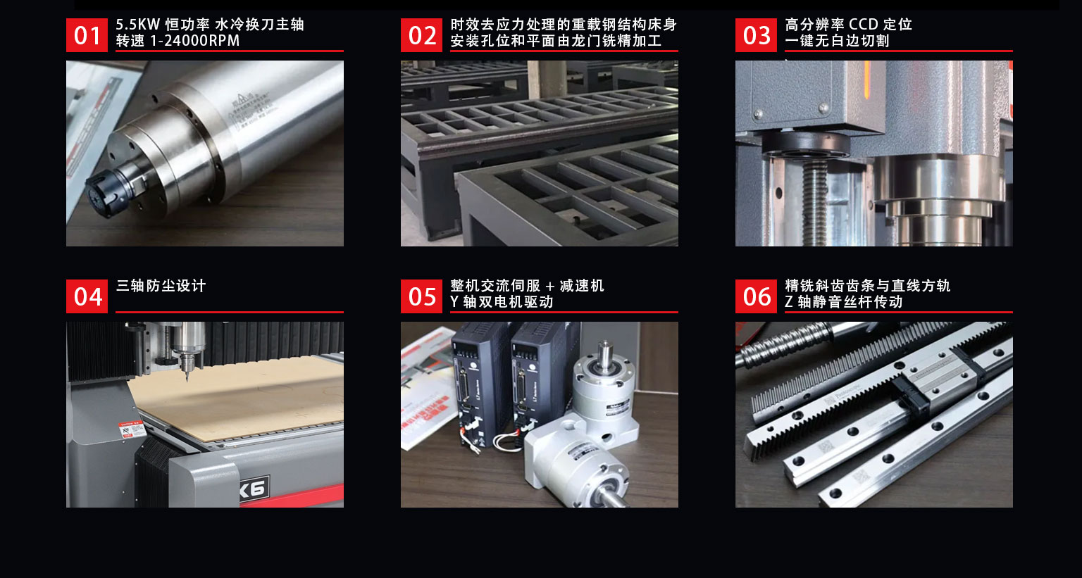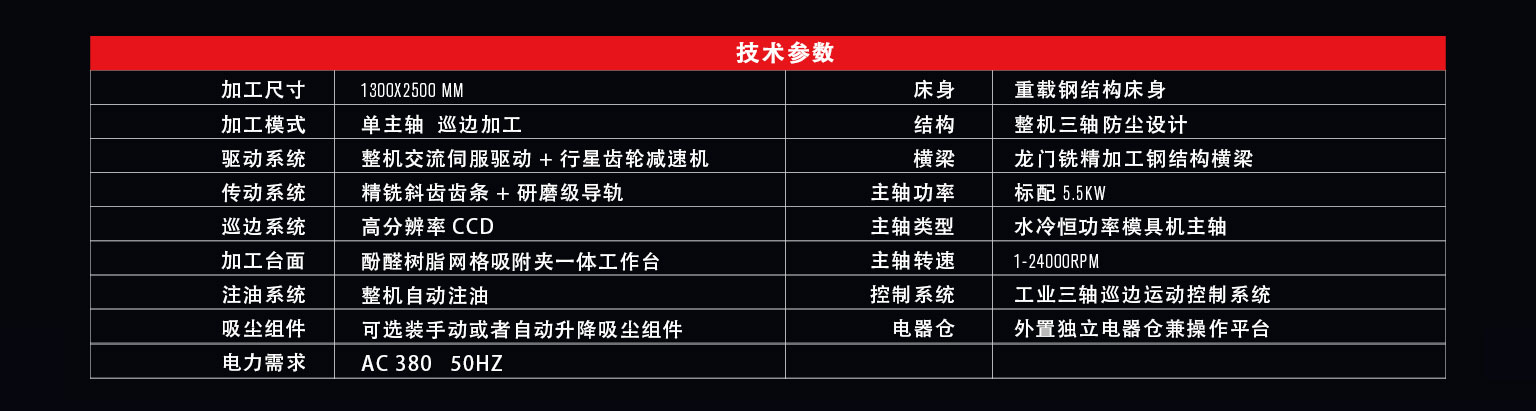 K6-2500 CCD 是賽迪克自動化(SDKCNC)自主研發(fā)生產的一款重型巡邊雕刻機,可高速雕銑切削各種軟性金屬及板材加工,高轉速、恒扭矩、低跳動、壽命長、穩(wěn)定強的工業(yè)特性,高分辨率CCD定位,可一鍵獲取輪廓無白邊切割,廣泛應用于銅、鋁、亞克力、木材、鋁塑板/絕緣板、抗倍特板、環(huán)氧樹脂板、碳纖維復合材料的雕銑切削及各種板材的加工領域,尤其適用于廣告標志等行業(yè)的異形邊緣加工